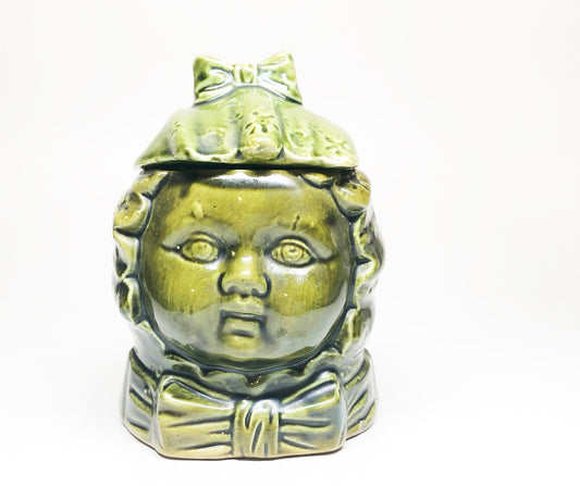 Early 1900s Two-Faced Crying Baby Green Tobacco Humidor