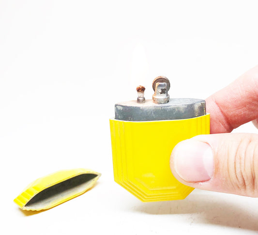 Working Eagle Yellow Octagonal Lighter - Vintage 1930's Trench Style Yellow Steel Sleeve Lighter in Original Box - Made in USA