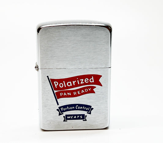 1959 Unfired Complete Zippo Gift Box with Meat Advertising Lighter, Fluid, Flints, and Instructions