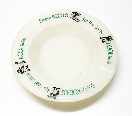 1930s Kool Cigarettes Willie the Penguin Milk Glass Ashtray
