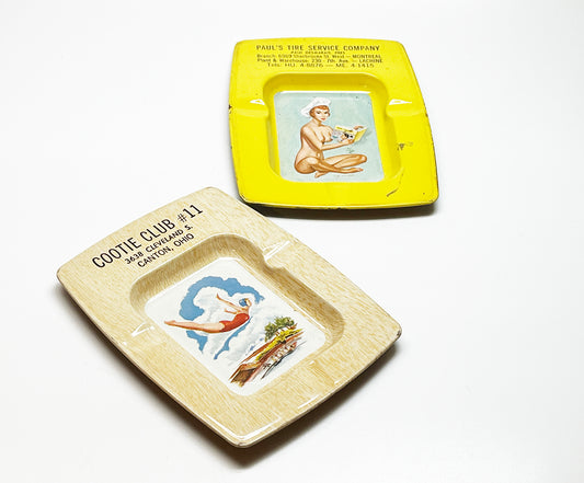 1950s Pinup Girl Advertising Ashtray Pair