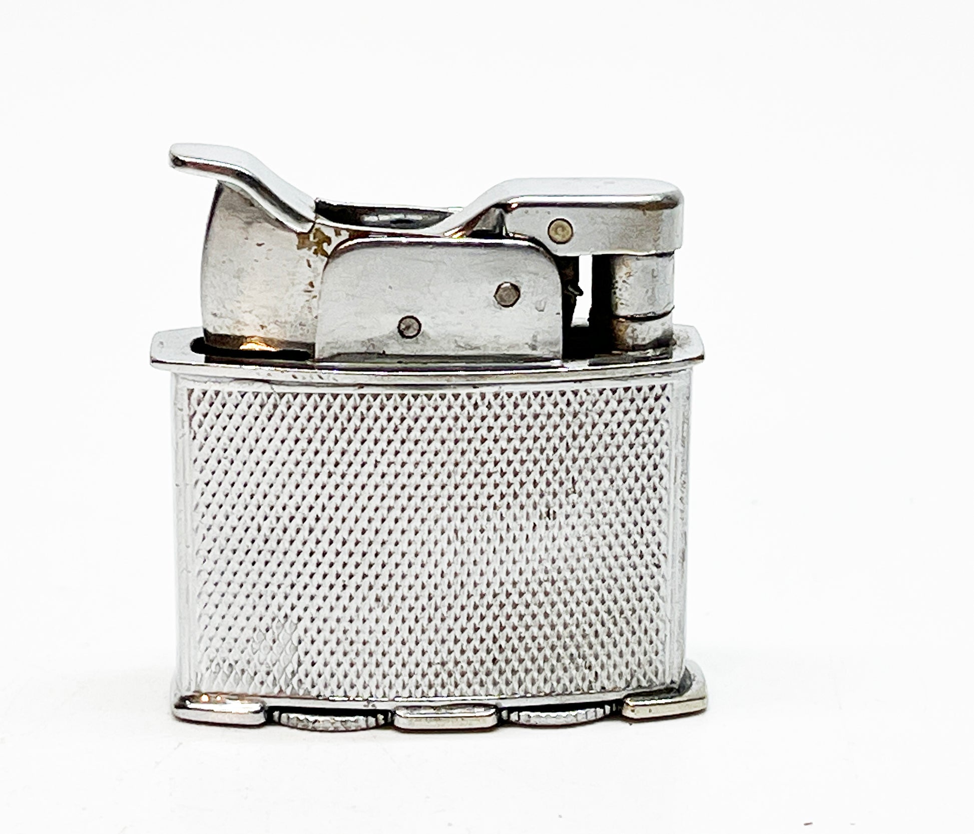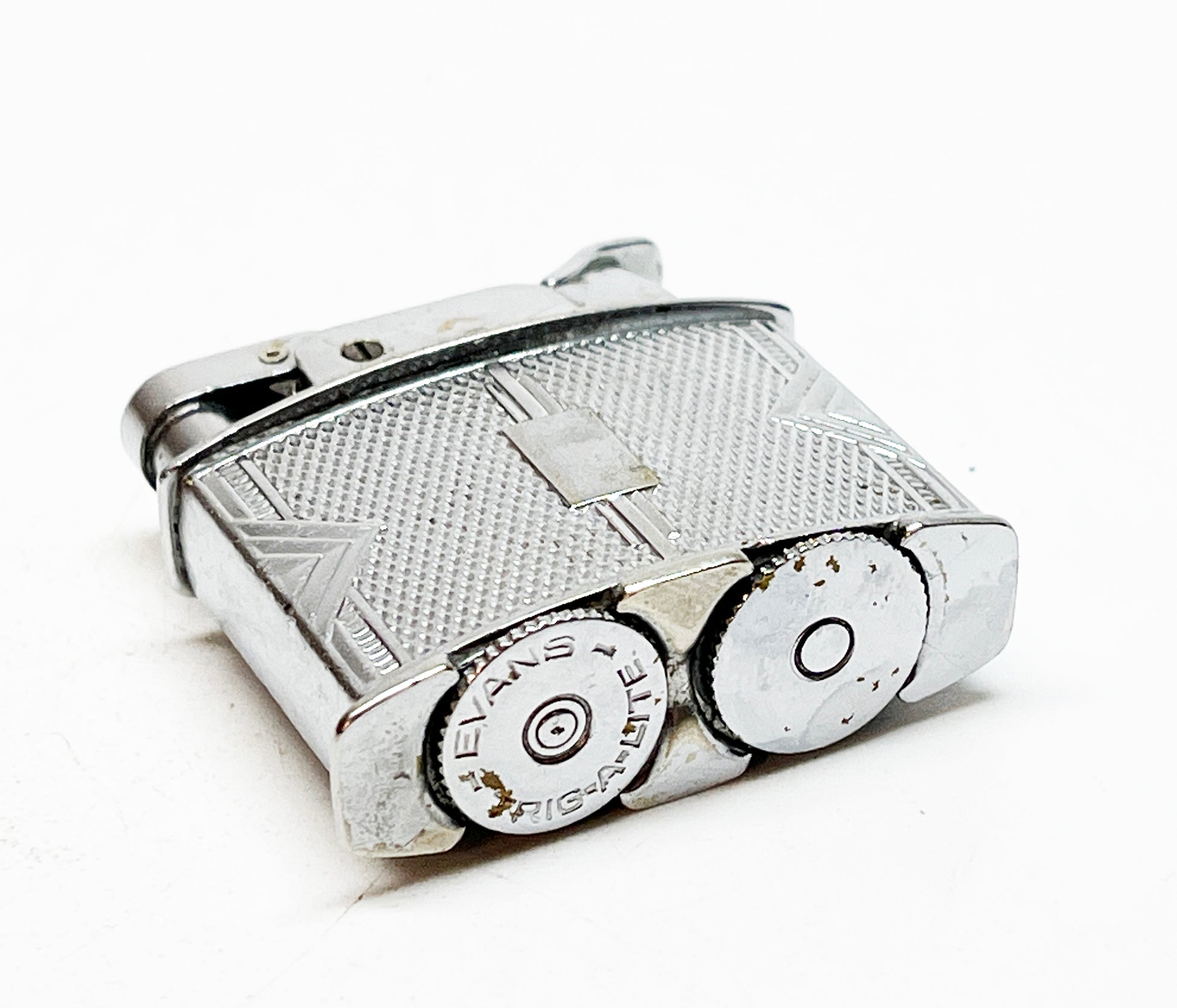 Working Evans trig-a-lite lighter made in the 1930s. Great design throughout. Here we have nice hammered metalwork on the front and reverse. Great working condition with a wonderful patina and unengraved initial plate.