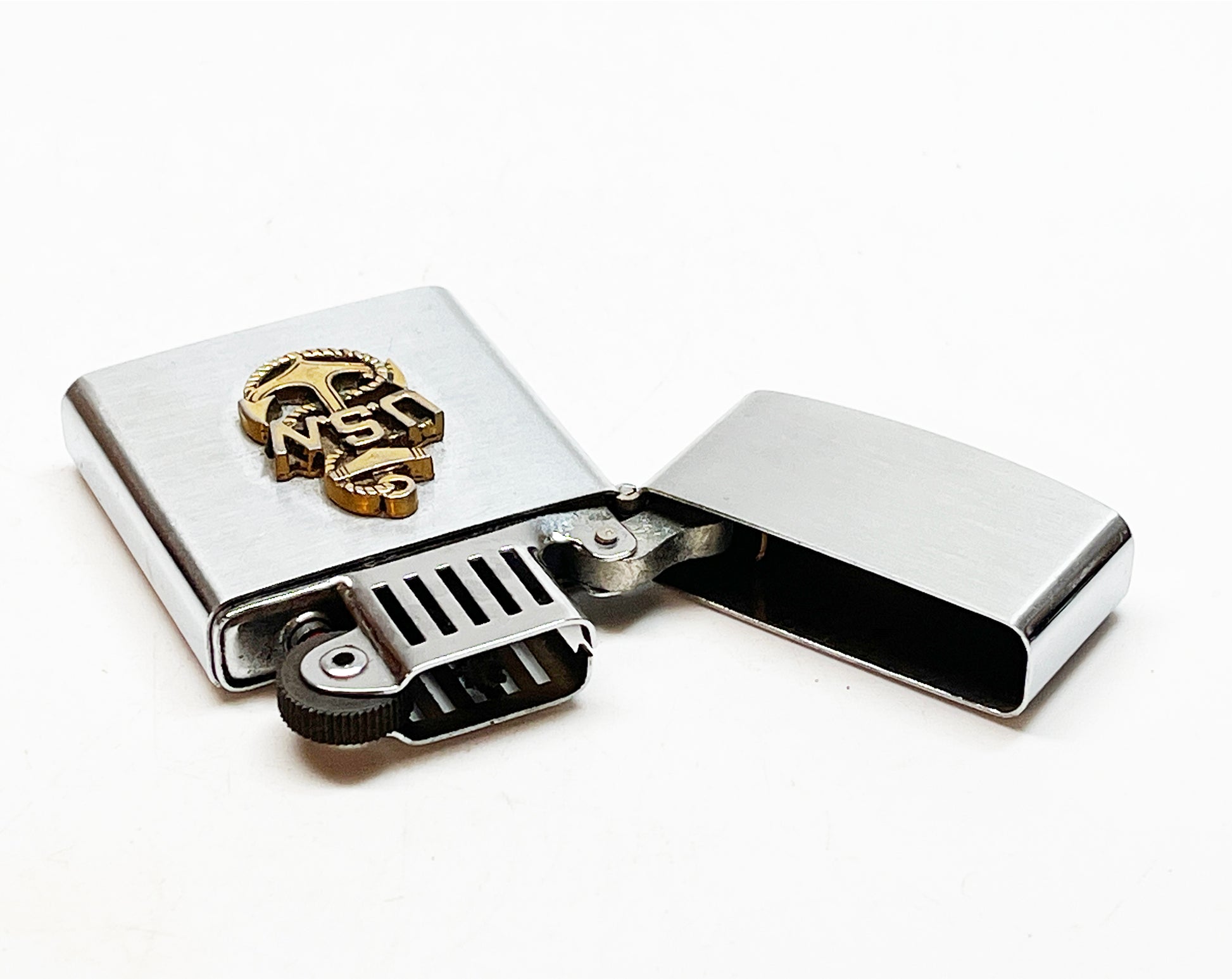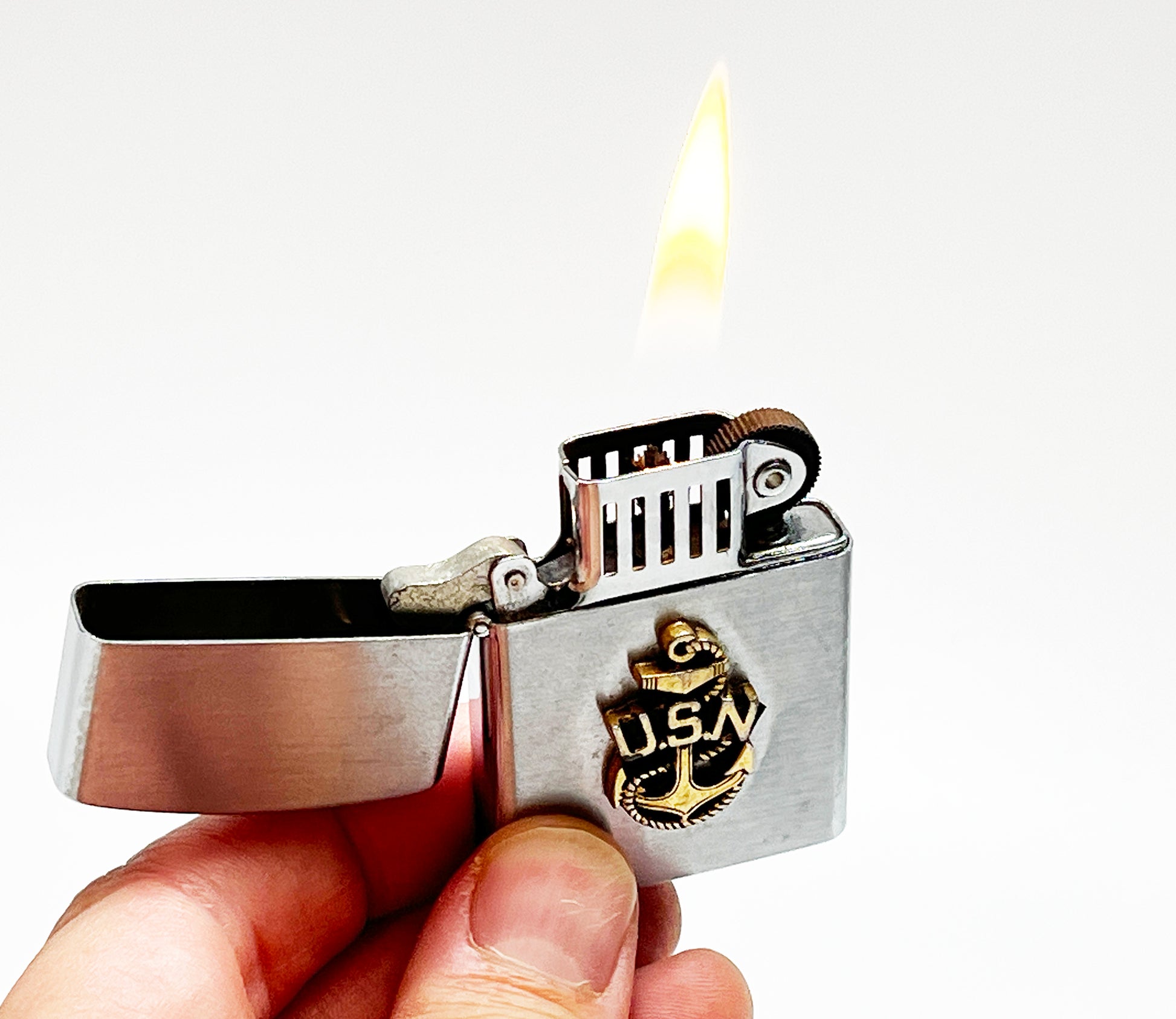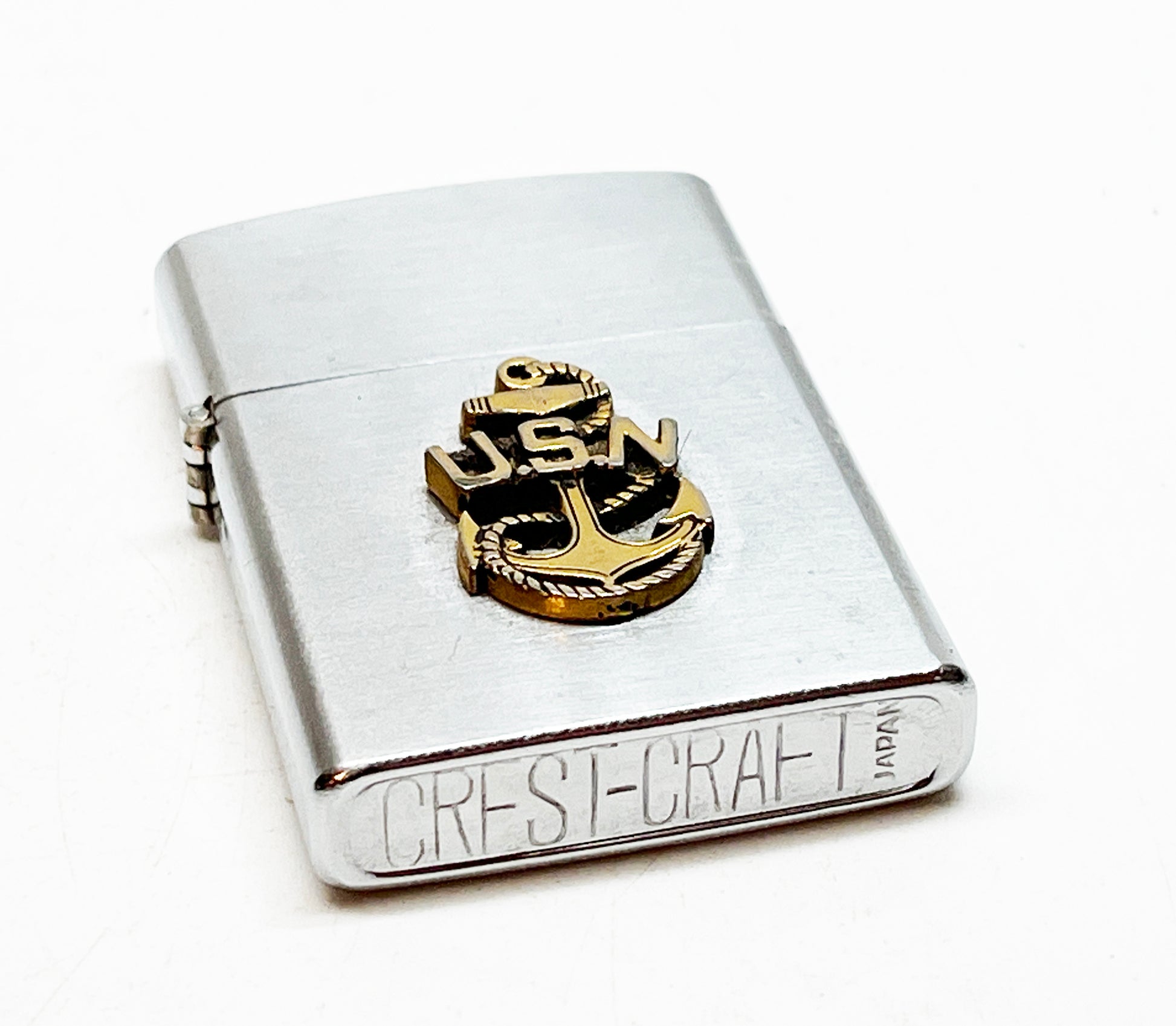 Here is an amazing working 1960s Crest-Craft War United States Navy flip top pocket lighter. Reconditioned to perfect working order, this is an amazing relic of the 1960s era of American military history. Made in Japan in the 1950s.