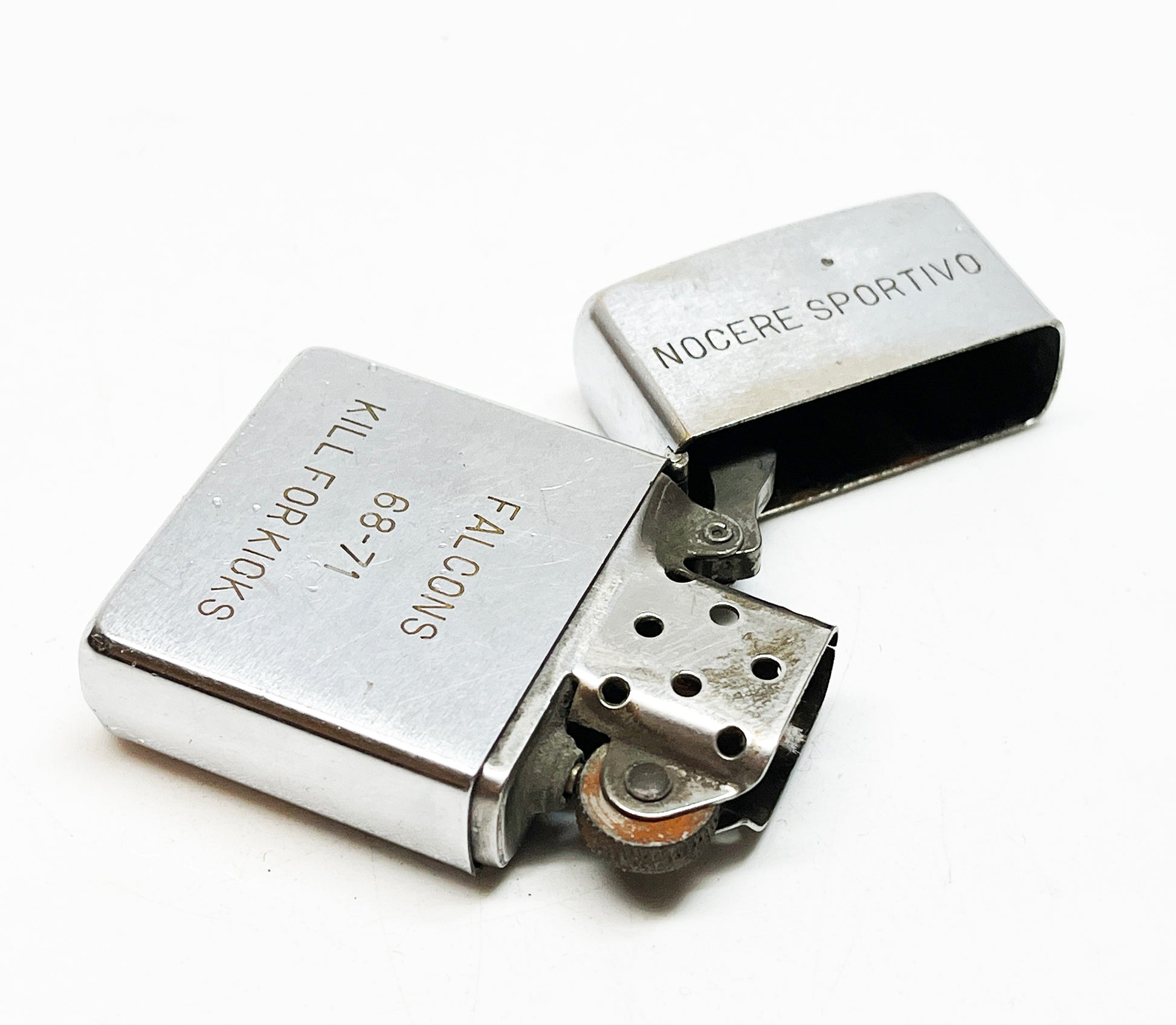 Extremely rare Vietnam-era Zippo lighter with correct insert. The lighter is a 1970 version with etching throughout along with an emblem. Absolutely amazing patina. Looks very cool. Strong cam, and the lighter snaps shut well. Great piece of history. Perfect working order.