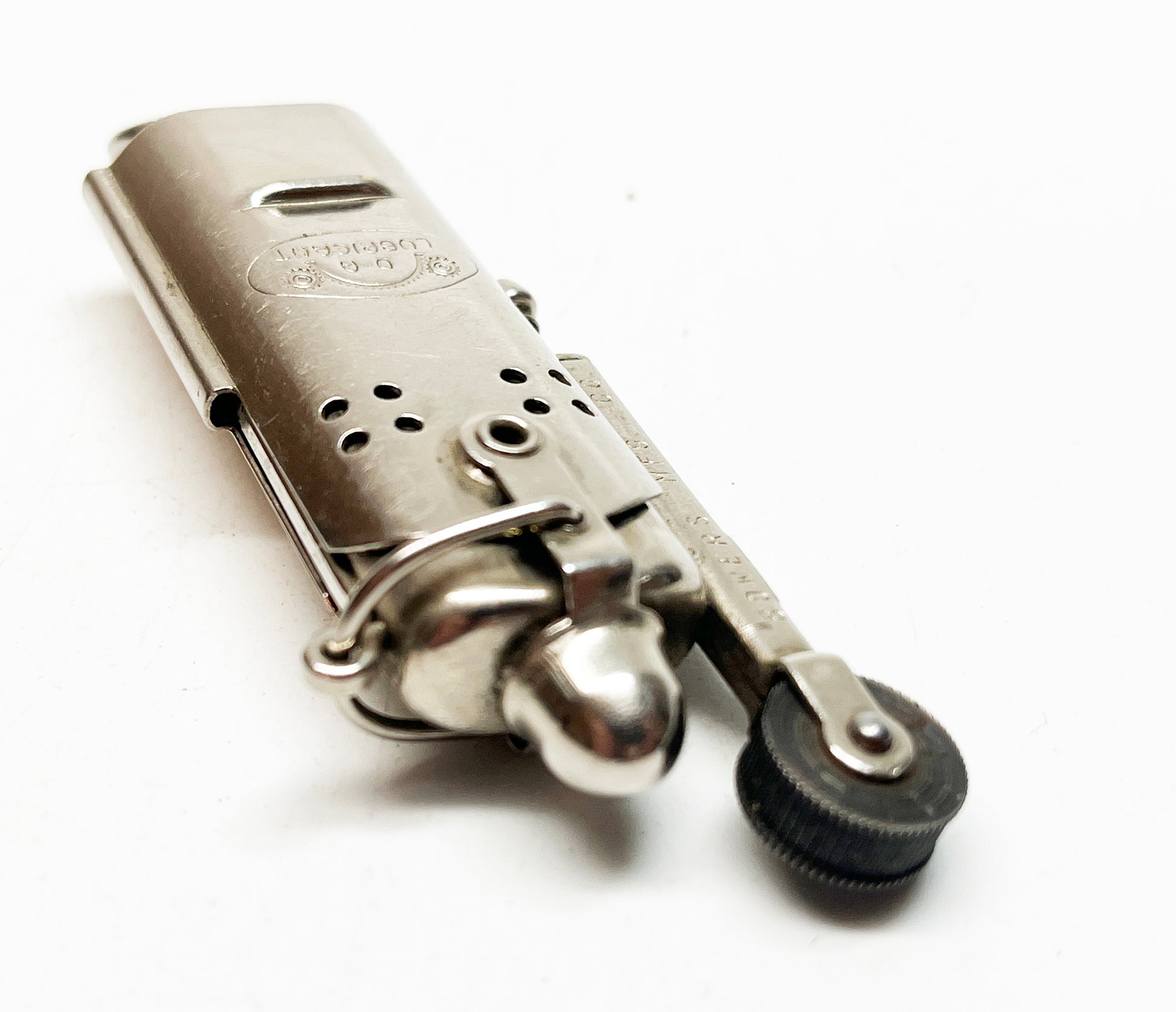 This vintage lighter was reconditioned with any needed replacement parts. New wick. Perfect working order. Wonderful vintage condition. Approximately 3" long x 1" wide in size.