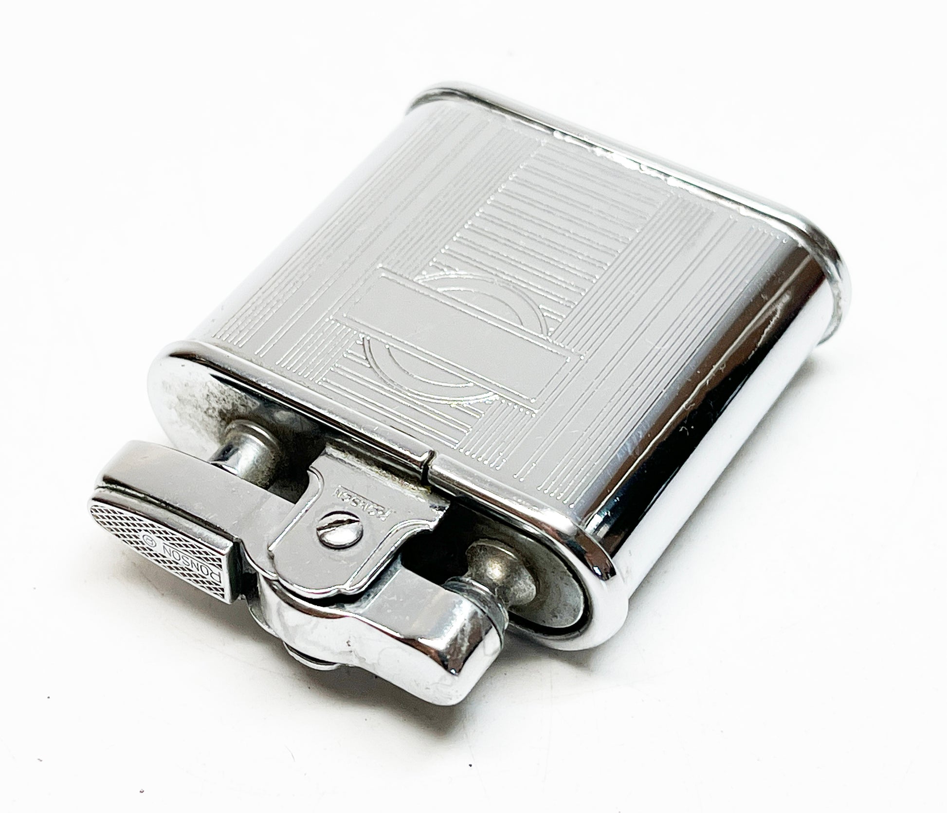 This vintage lighter has been reconditioned with any needed replacement parts. New flint and wick. Approximately 2 1/8" inches tall & 1 3/4" inches wide.